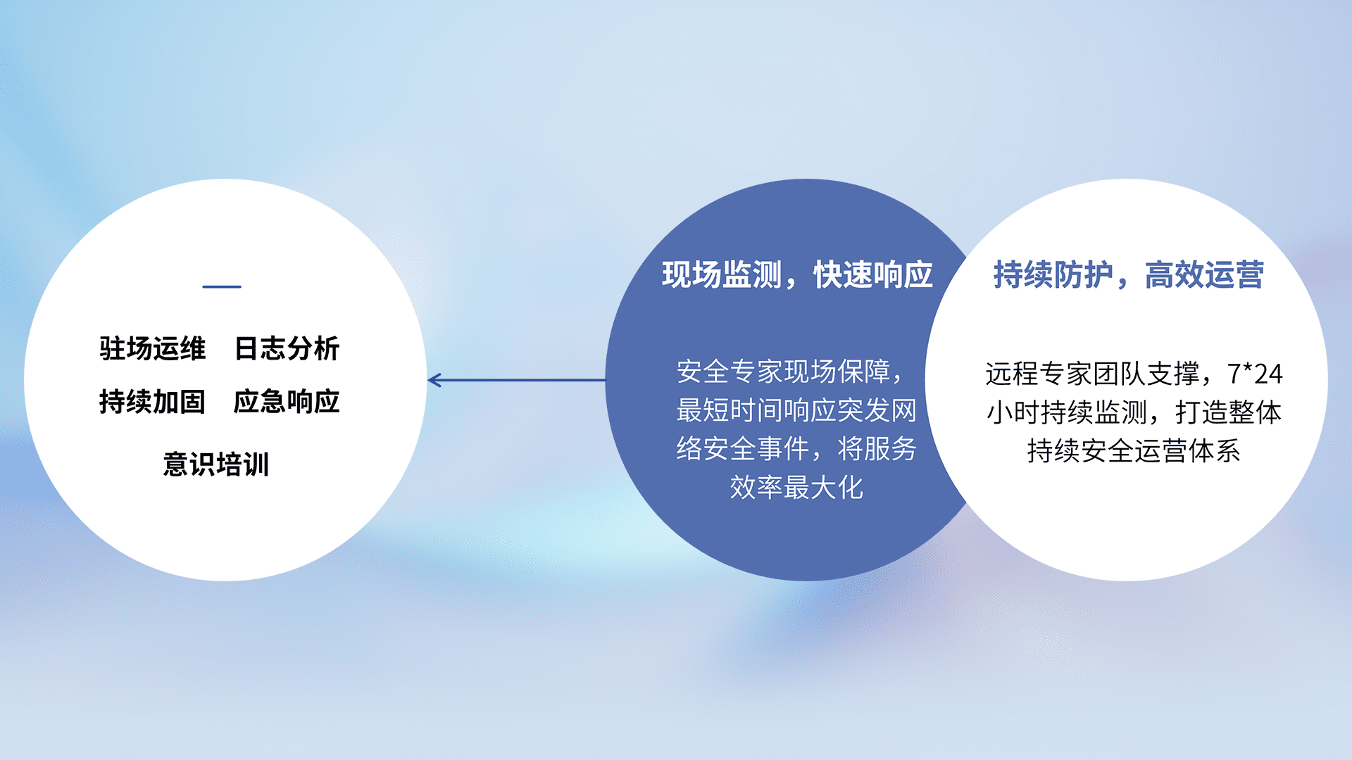 7X24小时持续监测安全事件,保持安全策略有效性,降低资产脆弱性风险,,,,精准拦截黑客攻击,,,减少被黑客利用的机会,,,第一时间遏制,,,,降低损失。。。